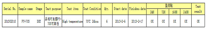 PY-705可剝膠的生產(chǎn)測試驗證;