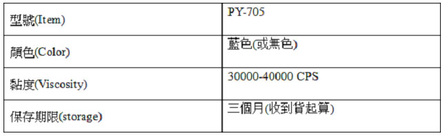 PY-006 為壓克力型紫外線硬化透明涂料,干燥速度快、高黏度、流平性佳、高光澤、耐磨、安定性佳、易剝除、不殘膠、主要用于玻璃保護漆 。